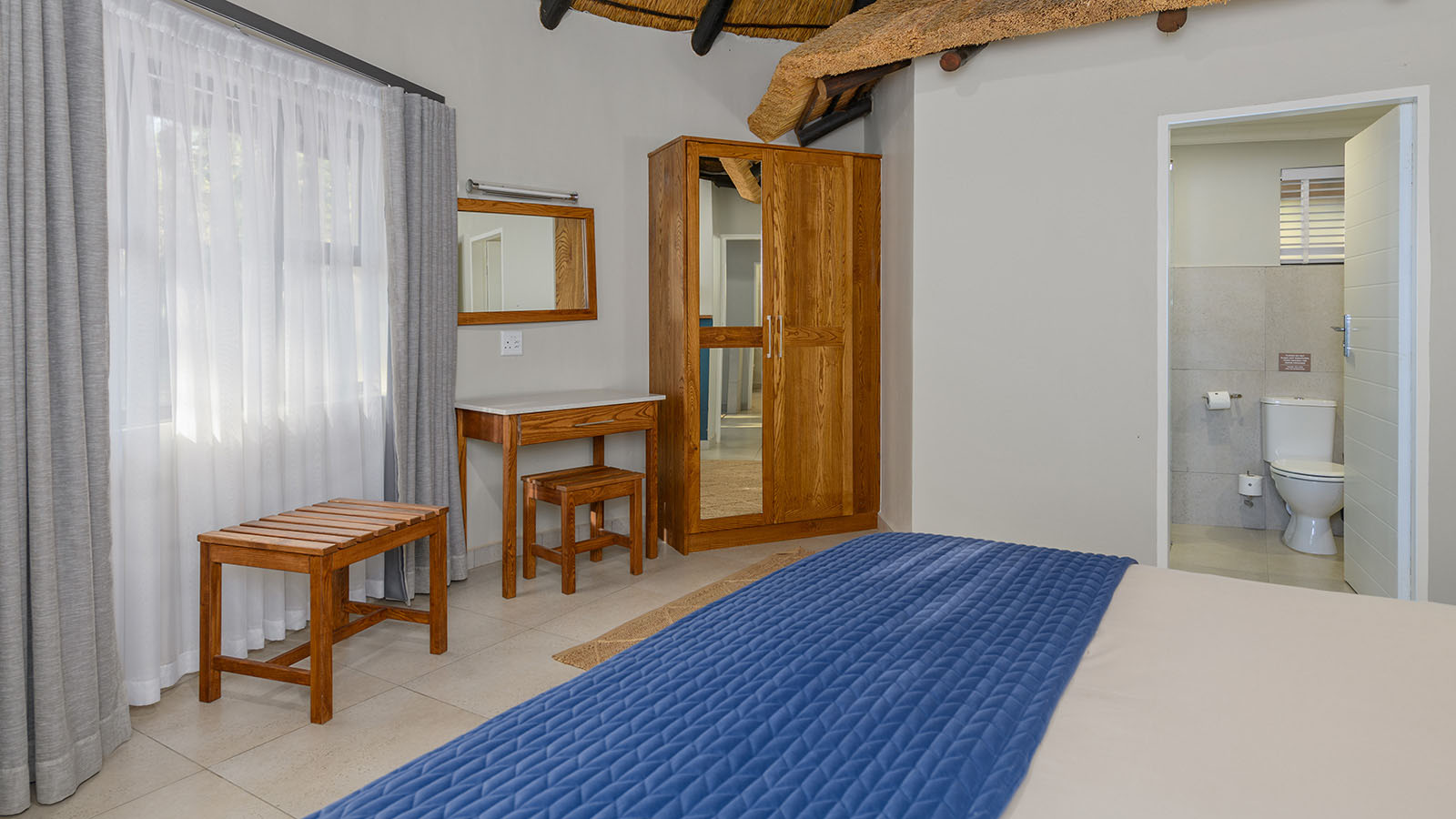This stylish self-catering unit is ideal for a group of up to four adults, two children, and one infant under 2 years old (in a cot available on request). The main bedroom offers a cosy queen-size bed and an en-suite bathroom, while the second bedroom is furnished with two single beds, perfect for extra guests or children. Enjoy the convenience of a full kitchen, making cooking time a breeze, while the spacious lounge features two single sleeper couches, providing the ideal spot where children under 12 can enjoy their own 'camp out' space. The highlight of this unit is the patio, complete with dining furniture, offering a relaxing atmosphere to embrace the tranquillity of the bush. For use of the free WiFi, kindly join us in our common areas.